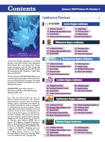 Choral Journal, PO Box 1705, Oklahoma City, 104 Special Events 127 Honor Choir Conductors