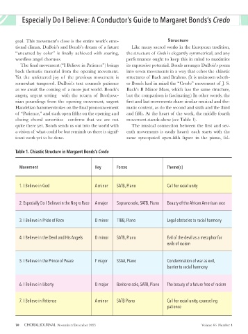 Table 1. Chiastic Structure in Margaret Bonds’s Credo
