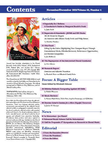 The Choral Journal (US ISSN 0009-5028) is issued Focus: A Bigger Table