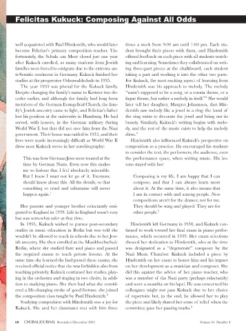 teaching privately. Kukuck continued her studies, play- did this against the advice of her piano teacher, who