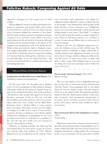Felicitas Kukuck’s music is mostly performed in Ger- of the bridge: it gets destroyed by all the people in the