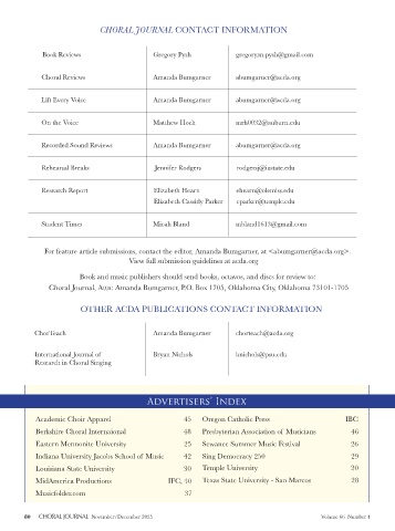 Choral Journal, Attn: Amanda Bumgarner, P.O. Box 1705, Oklahoma City, Oklahoma 73101-1705